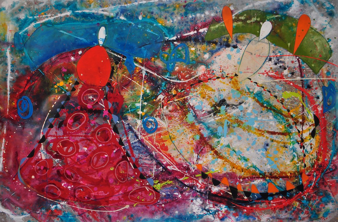 The artist speaks: “In the search for color and stain my work has been brewing. This sensitive abstraction is developed on the aqueous, to the casual blend’s expansion. In them, color, water and stains, from the micro to the macro in their magnitude, have given rise to characters that flow from these alchemy accidents, in the painting.