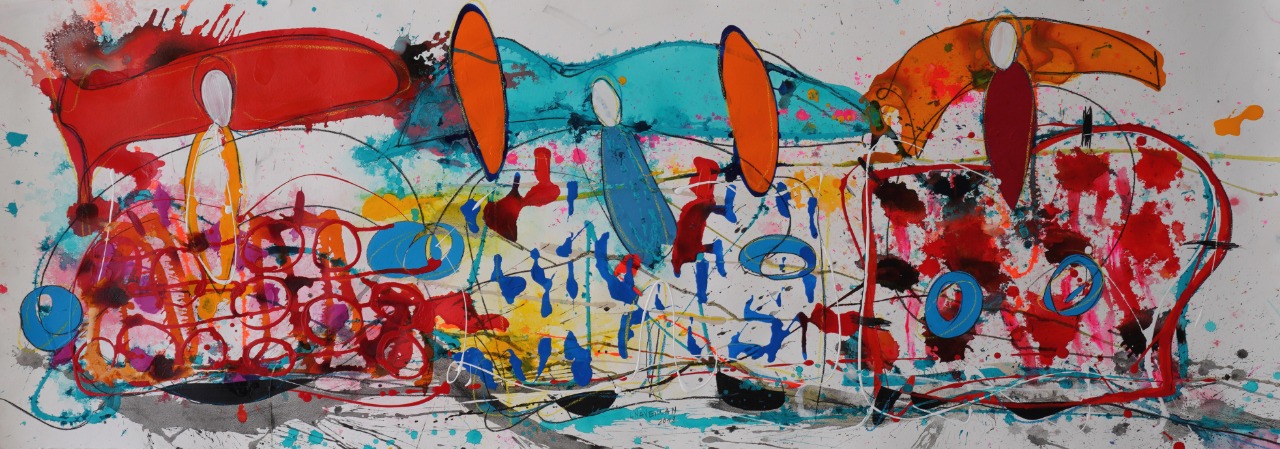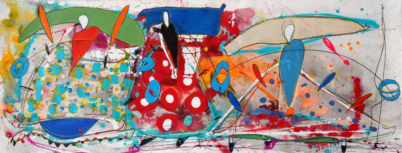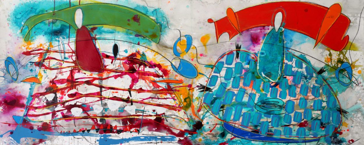The exhibition, “Transitar” (To Pass Through), as its name suggests, is a journey through countless recurring images in the artist’s pictorial work, reflecting her desire to create marks that invite touch, observation, and perception of matter and all the movement it entails. This process is always accompanied by vibrant color, forms, and, at the same time, a suggestive degree of abstraction. The aim of this exhibition is to enhance all the pictorial resources to create a visceral sensation that draws the viewer in. Previously, in her work, color, marks, and movements were interwoven with figures and characters emerging from them, forming a playful world. One that can unfold on its own, where its marks, textures, and colors form an independent work, based on purely pictorial work and its evocative language.