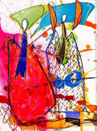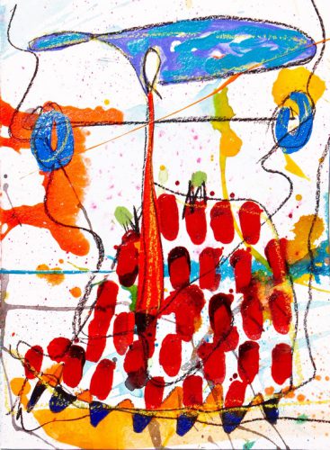 Pero qué es lo que vemos cuando vemos estas obras, ¿Cuál es este Imaginario que nos ofrece Lourdes Naveillán? Primero que nada, la repetición sistemática de una mónada que se pasea persistentemente a través de toda su obra, incluso en las esculturas. Este símbolo de la mónada es de alguna manera el epítome del hombre del siglo 20, y aparece por primera vez en la obra de Munch a finales del siglo 19. El término procede del griego «monás», que significa único, unidad.